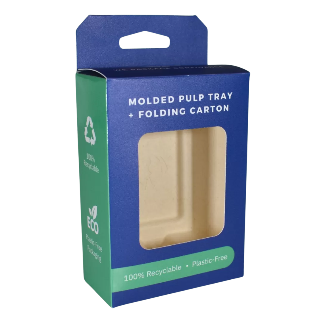 Combining a paperboard folding carton with a molded pulp tray insert keeps products secure while minimizing plastic use.