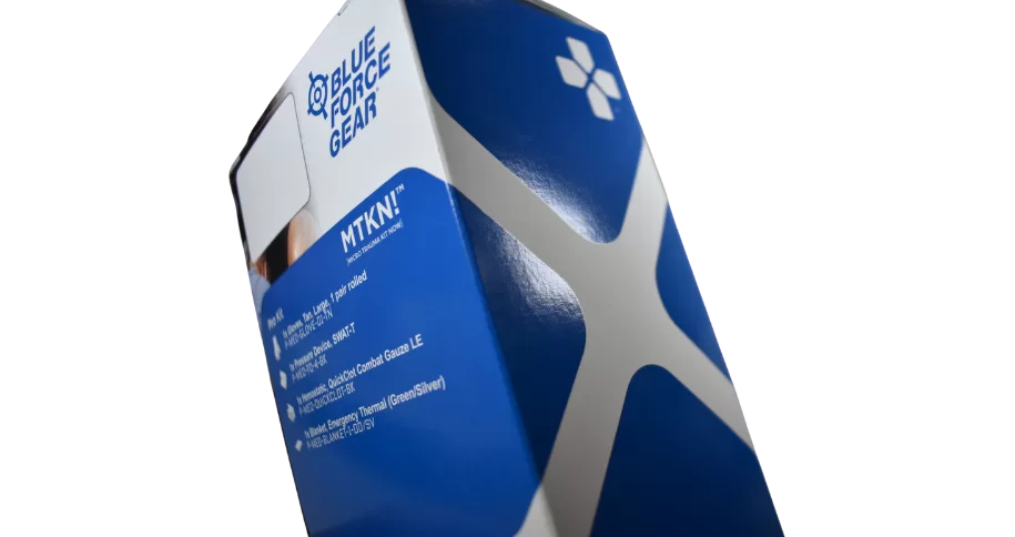BlueForce Gear, a leading manufacturer of lightweight, modular tactical gear, was looking to elevate the unboxing experience for their Trauma Kit. Previously packaged in a simple poly bag, the brand wanted a solution that offered stronger shelf presence, enhanced branding, and distinct packaging for each SKU.