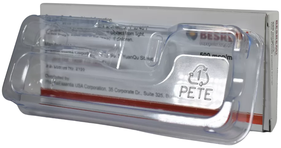 Wynalda began by replacing the paperboard insert with a thermoformed tray, significantly enhancing the syringe’s security and improving the overall customer experience. The trays are crafted from a 30 pt PETE medical blue material, which is 100% recyclable, and they are produced in an FDA-approved cleanroom. The cartons were sized to hold both the thermoform tray as well as a separate insert detailing the instructions for use.