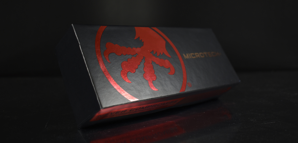 After the initial production run, Microtech desired an even higher quality look. In response, our team converted the box exterior to a solid black Neenah stock with a MPE laminate, which eliminated the white cross section on the cut ends of the wrap material. The result was a flawless, sleek package that perfectly represented the unsurpassed quality that Microtech puts into every one of their knives.