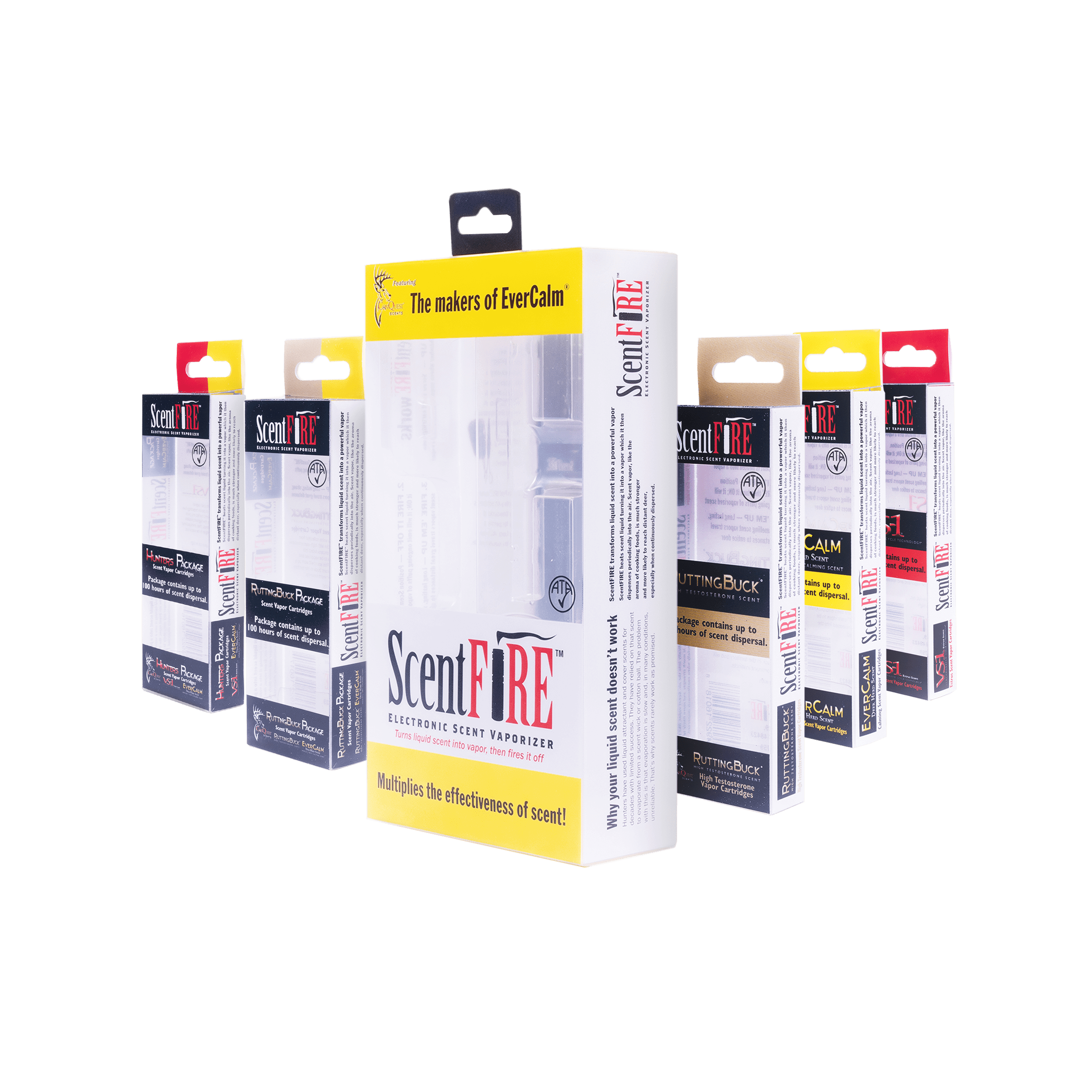 This unique hunting and outdoor industry product converts traditional and proprietary blends of hunting scents to vapors. Electronically, the power unit heats up the scent inside the cartridge and emits the vapor scents at controlled intervals. Each package comes with a power unit, a scent cartridge and a remote control.