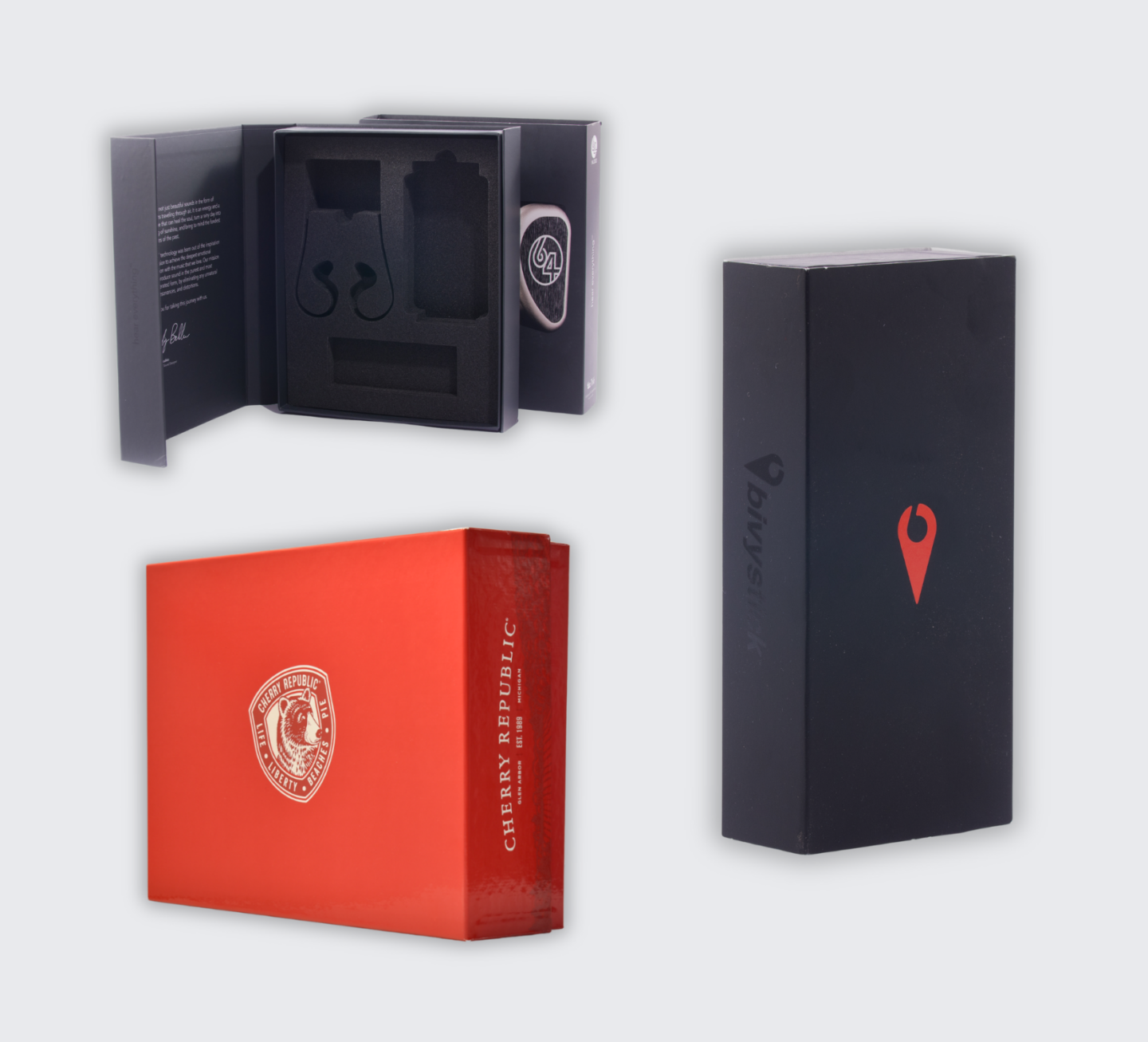 Rigid Boxes serve as a premium box option for medium to light-weight products. Rigid Boxes are made of chip board materials with a fine sheet paper wrap. Rigid Boxes typically include a base and a lid and are often referred to as rigid setup boxes.