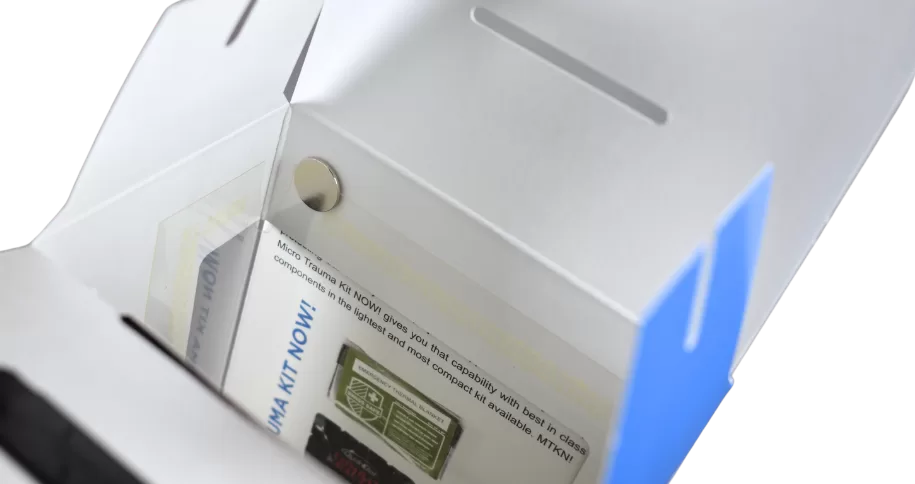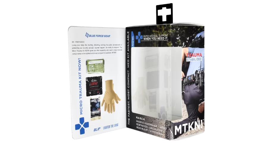 BlueForce Gear, a leading manufacturer of lightweight, modular tactical gear, was looking to elevate the unboxing experience for their Trauma Kit. Previously packaged in a simple poly bag, the brand wanted a solution that offered stronger shelf presence, enhanced branding, and distinct packaging for each SKU.