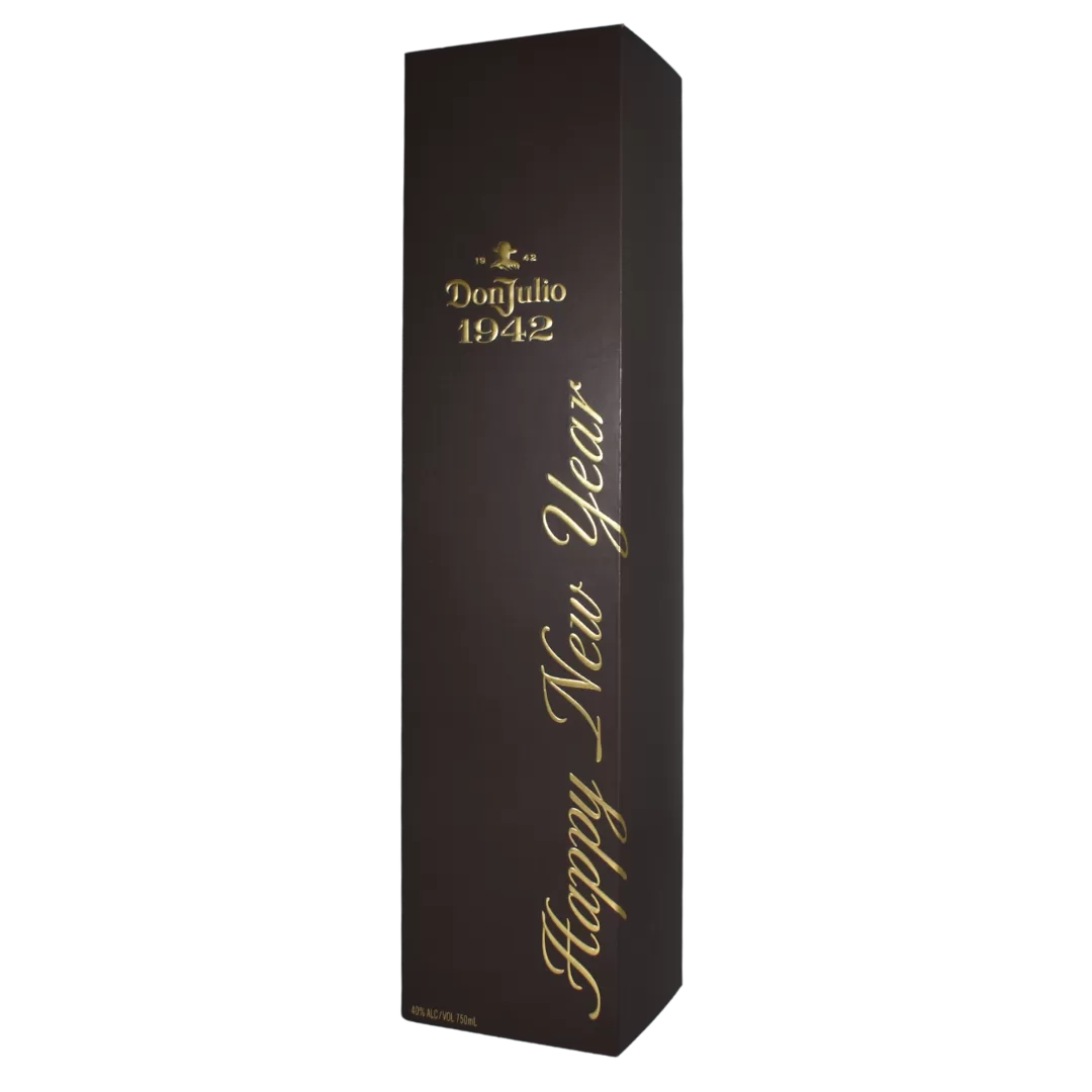 The holiday sleeves transformed the Don Julio 1942 tequila bottles into exquisite, gift-ready pieces. The combination of custom ink, sophisticated coatings, gold foil, and meticulous embossing created a stunning visual impact, enhancing the premium feel of the product.