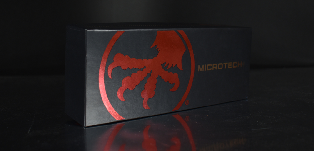 After the initial production run, Microtech desired an even higher quality look. In response, our team converted the box exterior to a solid black Neenah stock with a MPE laminate, which eliminated the white cross section on the cut ends of the wrap material. The result was a flawless, sleek package that perfectly represented the unsurpassed quality that Microtech puts into every one of their knives.