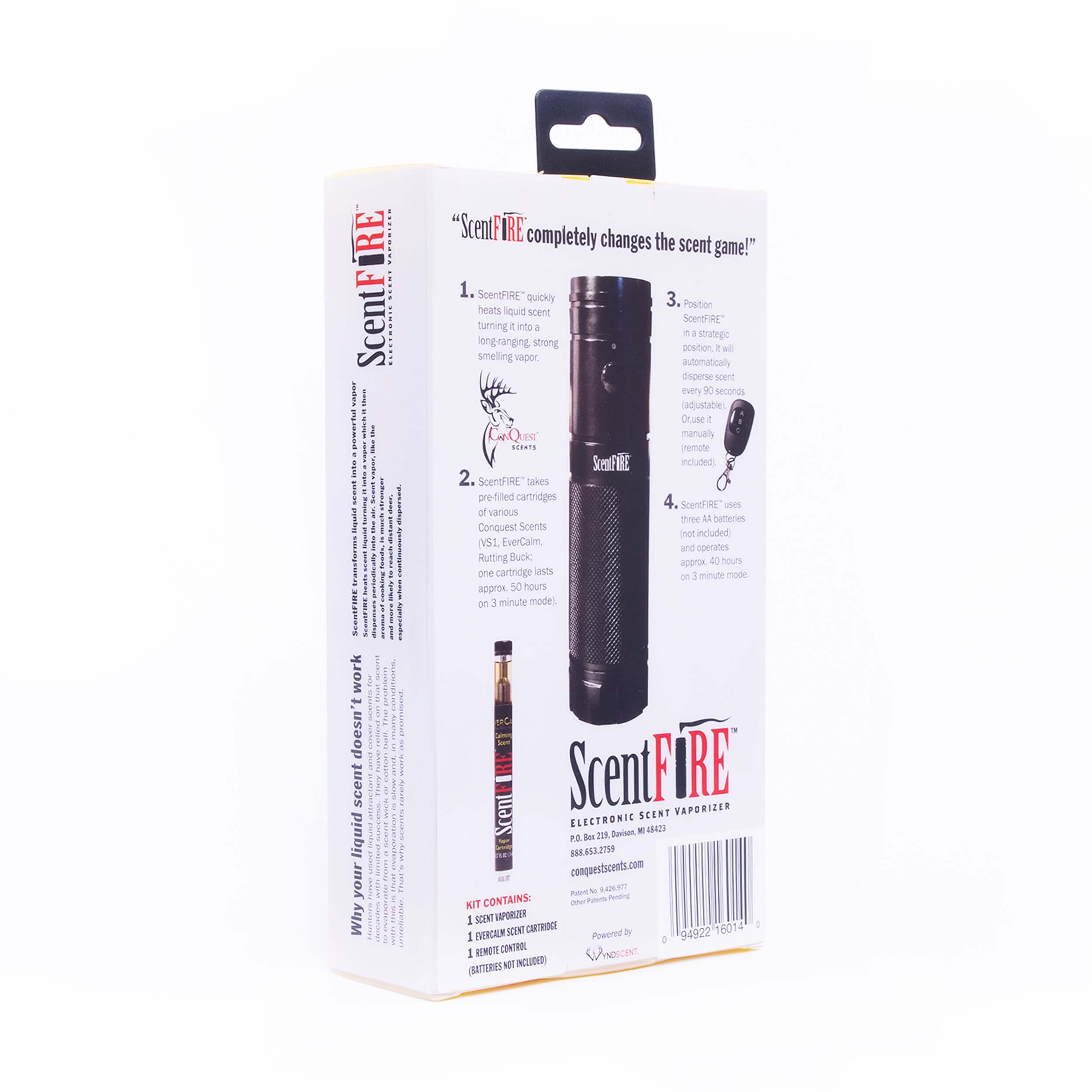 This unique hunting and outdoor industry product converts traditional and proprietary blends of hunting scents to vapors. Electronically, the power unit heats up the scent inside the cartridge and emits the vapor scents at controlled intervals. Each package comes with a power unit, a scent cartridge and a remote control.