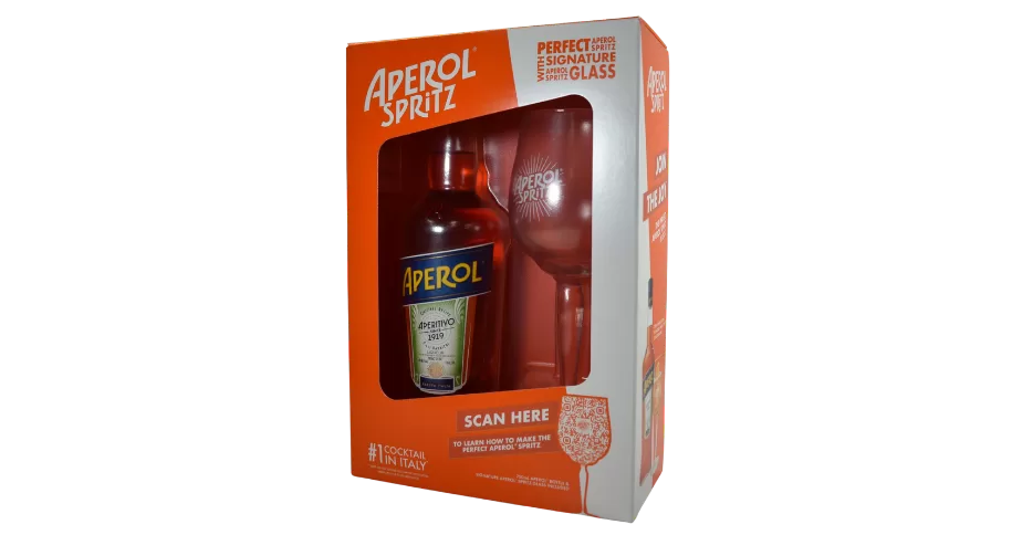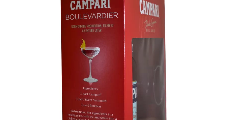 Wynalda Packaging partnered with AMD Group to create promotional packaging solutions for two iconic Italian liqueur brands: Aperol & Campari. Designed to capture attention on crowded retail shelves, the packages were each crafted to hold a bottle of the liqueur along with cocktail accessories. The Aperol bottle was paired with an Aperol Spritz glass and the Campari bottle paired with a Negroni glass and mixing spoon.