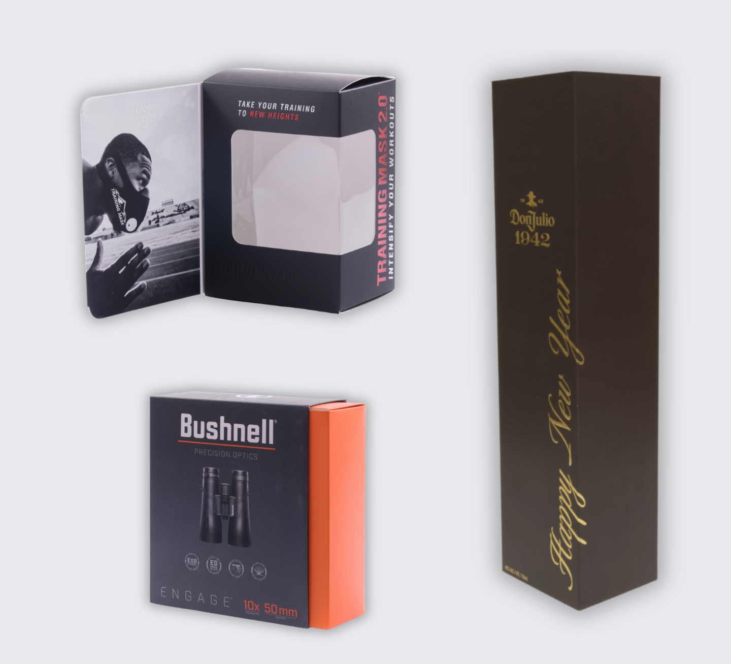 Rigid Boxes serve as a premium box option for medium to light-weight products. Rigid Boxes are made of chip board materials with a fine sheet paper wrap. Rigid Boxes typically include a base and a lid and are often referred to as rigid setup boxes.