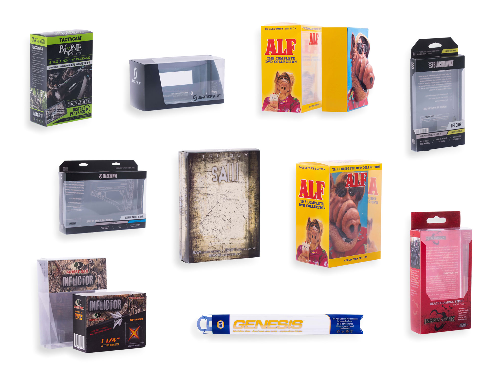 At Wynalda Packaging we produce custom plastic Folding Carton solutions to fit our customer’s specific needs. We can print using custom colors and specialty coatings to create transparent packaging that showcases your product while enhancing your brand.